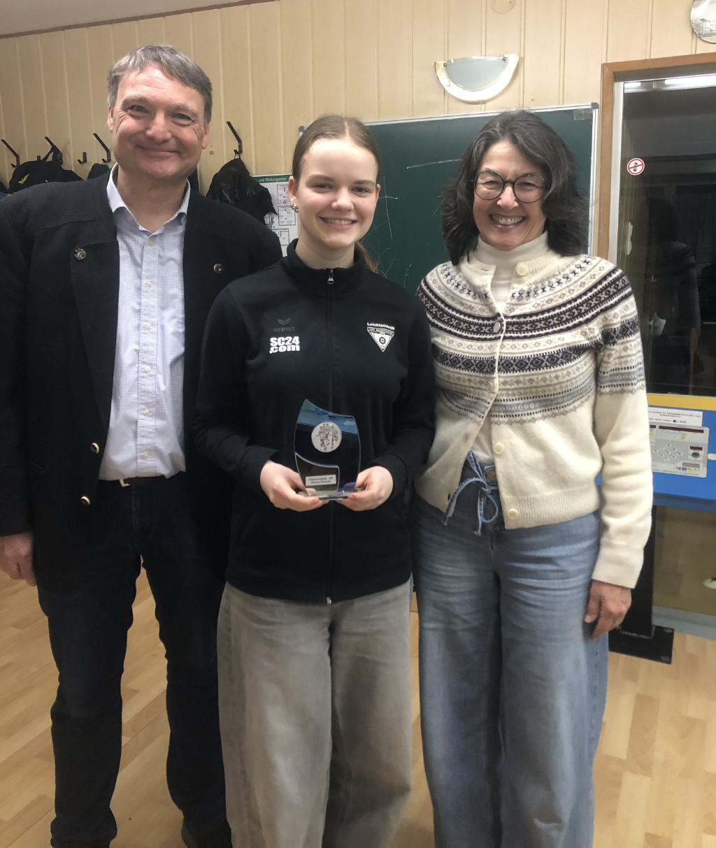 • Den Pokal der Schülerinnen erhält Miriam Schwarz für ihre Leistungen im vergangenen Jahr : 10,99 sec. über 75m, 2:56,54 min. über 800m, 1,28m im Hochsprung, 4,04m im Weitsprung und 33m im Ballwurf. Diese Leistungen erzielte sie in 7 Wettkämpfen.